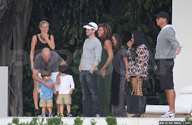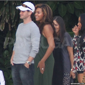 Beyoncé foi clicada no último final de semana na festa promovida pelo jogador de beisebol Alex Rodriguez, acompanhada da sua prima a futura mamãe curtiu a festinha beira à piscina organizada pelo jogador usando um vestidão verde.
